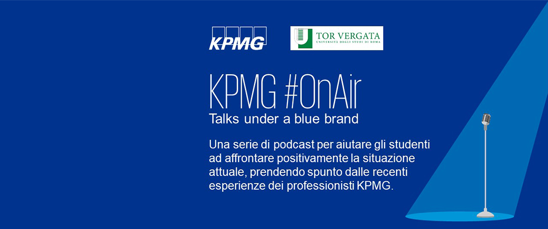 Prosegue “KPMG #OnAir“, una serie di podcast in cui i professionisti KPMG raccontano agli studenti e laureati dell’Università degli Studi di Roma “Tor Vergata” la propria esperienza nella gestione dei clienti e dei progetti di lavoro durante e dopo il lock down. Una condivisione che può essere utile agli studenti non solo in vista del loro ingresso nel mondo del lavoro, ma anche per affrontare le attività accademiche.
